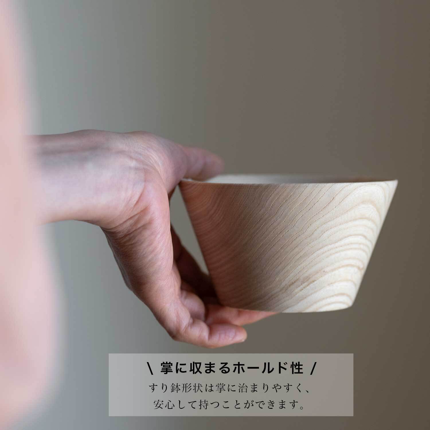 木地挽きの産地として知られる「山中漆器」の技術を応用し、素材には国産天然木を使用。木目の美しさを生かしつつ、ウレタン塗装で仕上げています(※Cupにはミズメ材を使用)。